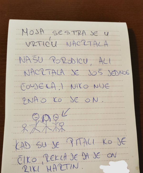 U središtu jednog takvog događaja nalazi se crtež koji je naslikala mala djevojčica. Ona je, na svoj način, prikazala svoju porodicu, uključujući svoju mamu, tatu i sestru. Međutim, ono što je njen crtež učinilo izvanrednim bio je prisustvo nepoznatog muškarca koji se našao među njima. Kada je vaspitačica upitala djevojčicu ko je taj čovjek, njen brz i duhovit odgovor bio je: „To je naš novi komšija koji se preselio!“. Ova situacija nije samo nasmijala sve prisutne, već je također otvorila diskusiju o tome kako djeca prihvataju nove ljude i situacije u svom životu.